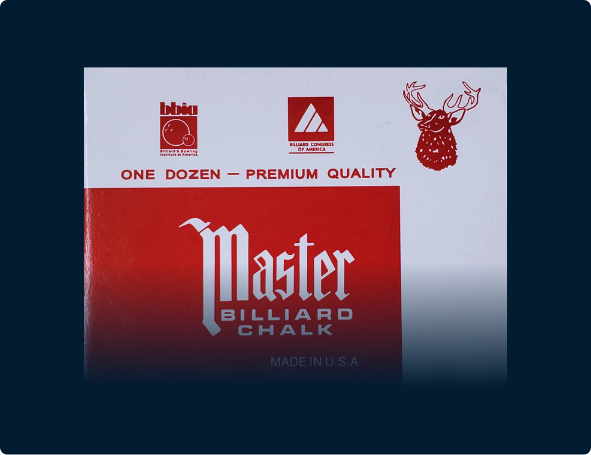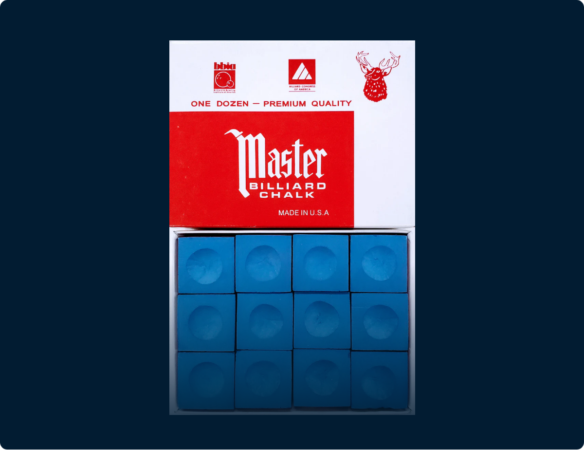 Phấn Master có kết cấu chuyển đổi mịn màng và đều lên đầu cơ da. Phấn tạo lớp phủ phù hợp để ngăn ngừa trượt cơ và mang lại sự hài lòng chắc chắn cho người chơi. Có các màu: Xanh dương, Xanh lá, Xám, Đỏ, Đỏ gạch, Vàng, Đen và Nâu. Hộp có 144 viên.